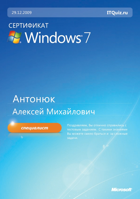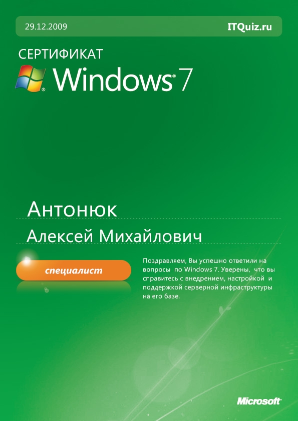 Специалист Windows 7 (Сложный тест)